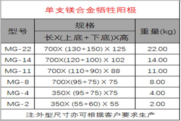執(zhí)行標(biāo)準:GB/T17731-2015鎂合金犧牲陽極